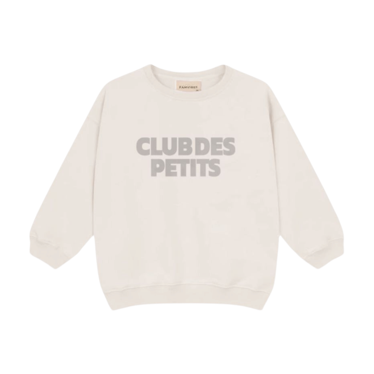 Der Famvibes Sweater Club de Petits ist mega kuschelig und oversized geschnitten. erfekt für die kühlere Jahreszeit. Das helle beige des angenehmen Baumwoll-Sweaters unterstreicht den coolen Statement Print in greige und lässt sich ganz vielseitig kombinieren. Zusammen mit den passenden Sweatern für Mama und Papa entsteht ein süßer Family Look.