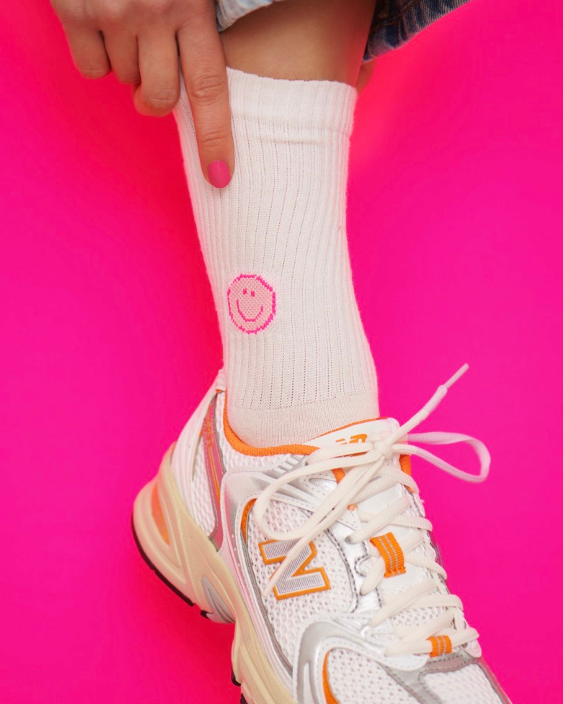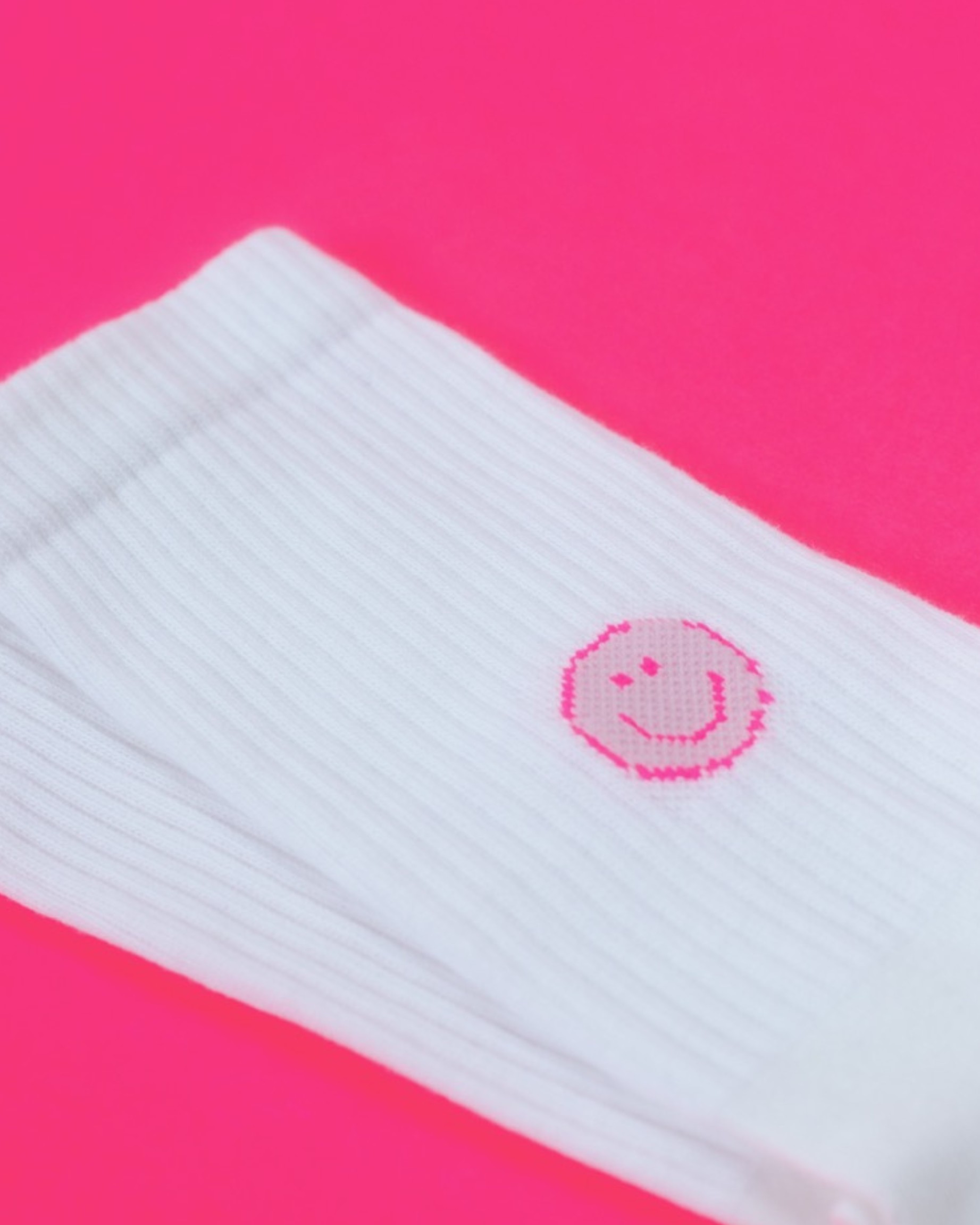 Entdecke die Socken mit Glitzersmiley von Ooley, die Glitter Smile! Diese Socken vereinen Glitzer mit knalligem NEON Pink in einem einzigartigen Design. Sie sind nicht einfach nur Socken, sondern ein echtes Fashion-Statement für deinen Look. Durch ihre auffälligen Details und die charmante Ausstrahlung bringen sie Leichtigkeit, Style und Glamour an deine Füße. Ideal für alle, die sich ein wenig Spaß am Alltag wünschen!